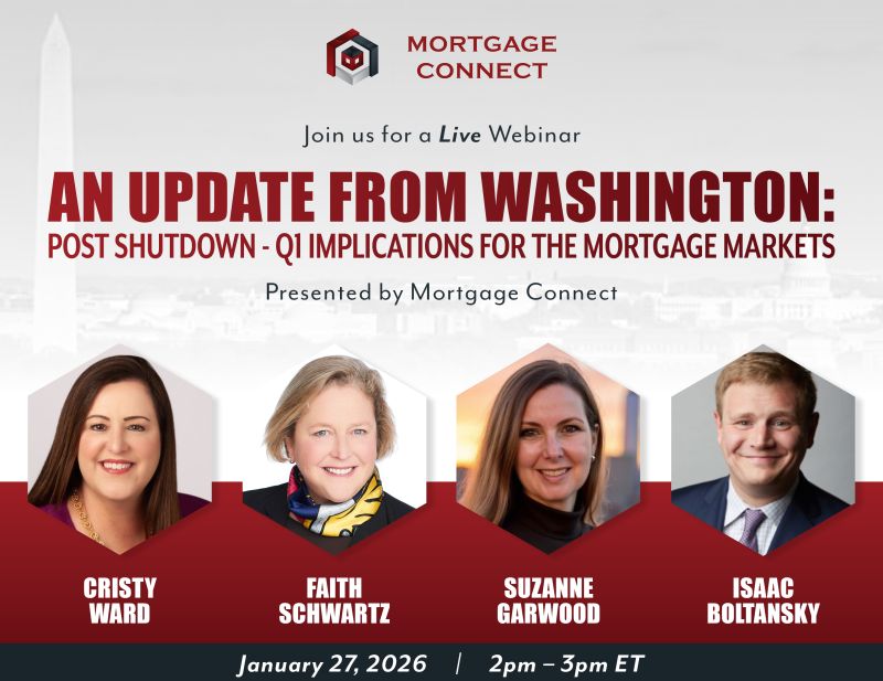Join us for a live webinar as our experts share what Q1 holds for the mortgage markets, from the likelihood of Congress moving on housing reform of legislation (including the ROAD to Housing Act) to what to expect in GSE reform.